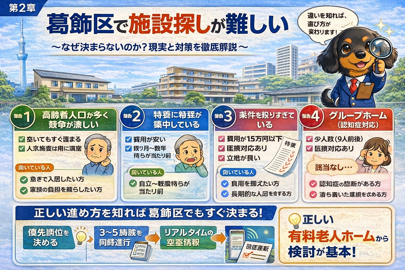 「葛飾区で介護施設を探しているけど、なかなか決まらない…」