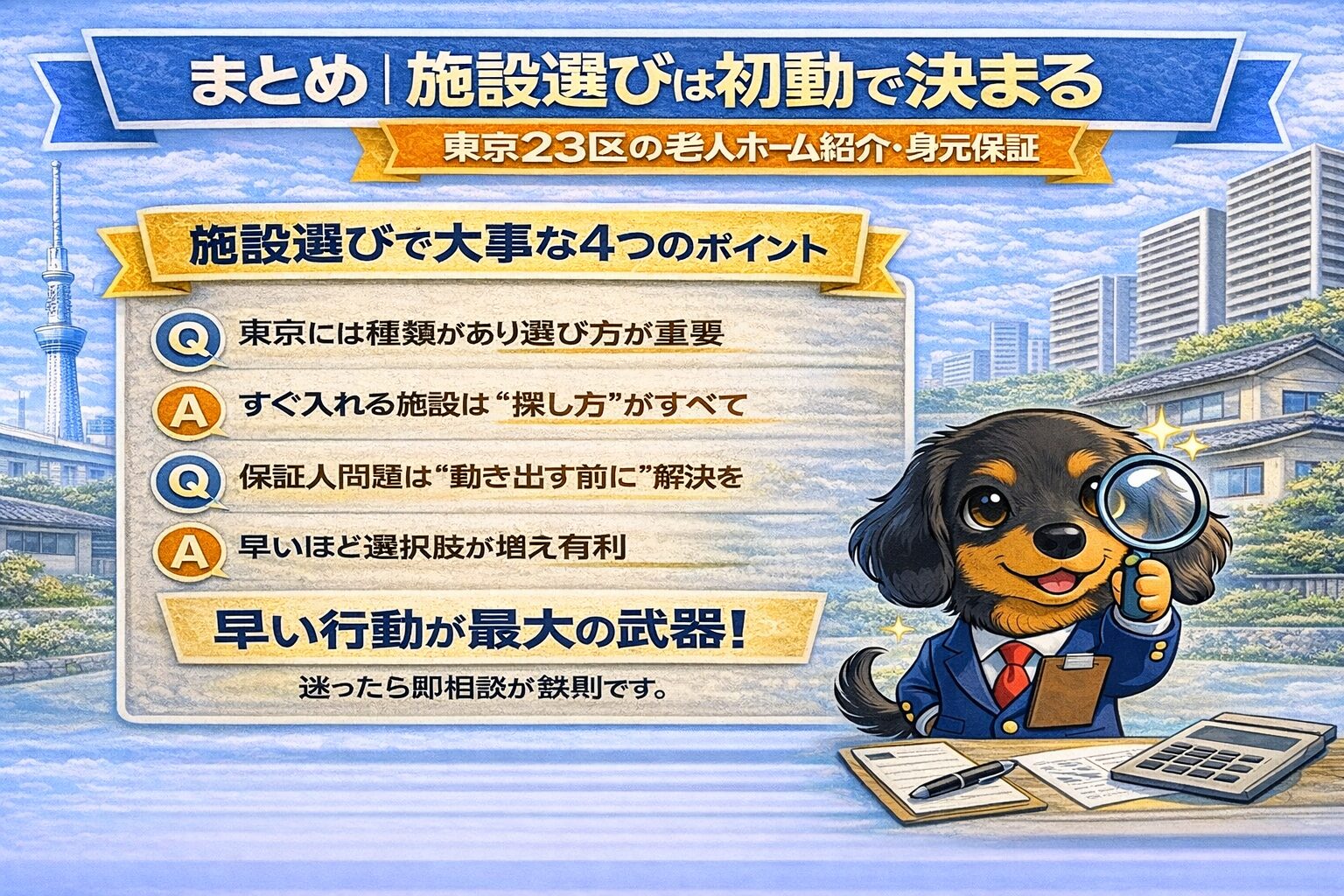 ■まとめ|東京23区の老人ホーム探しは“初動で9割決まる”